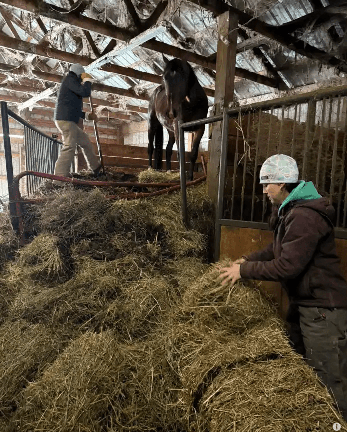 “Their heads were in the rafters,” said Jennifer Straub of Dorset Equine Rescue, who took part in the arduous process of freeing the stallions from the barn. “It’s one thing to see a picture or video, but another thing altogether to be standing there, looking up at them. It was like they were standing on a cliff of manure. It was heartbreaking to see that.”