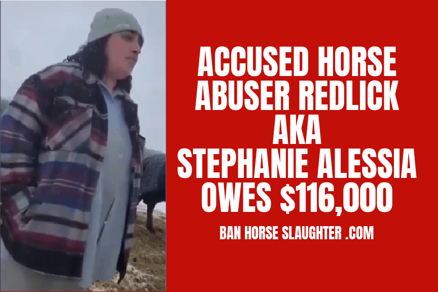 And now she owes $116,229.12 for the care of the horses she neglected and then tried unsuccessfully to blame everyone else for their horrific condition.
