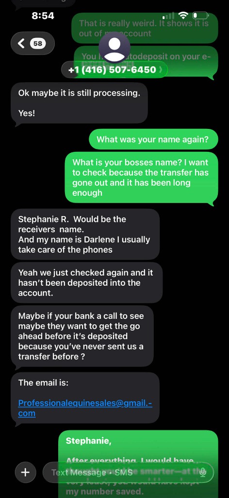 If you scroll back in our blog you’ll find plenty more of her SCAMS, from horses for sale, to hay for sale, to offering hauling, to having a barn to lease – none of which she actually has —  but here’s an example of some of the most recent ones…