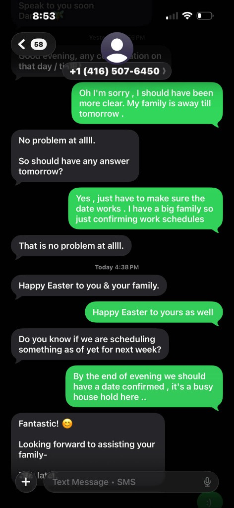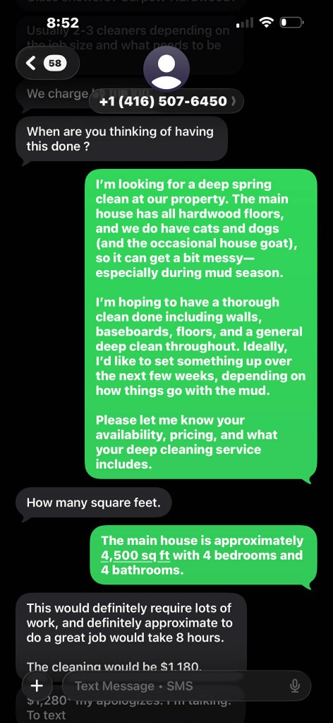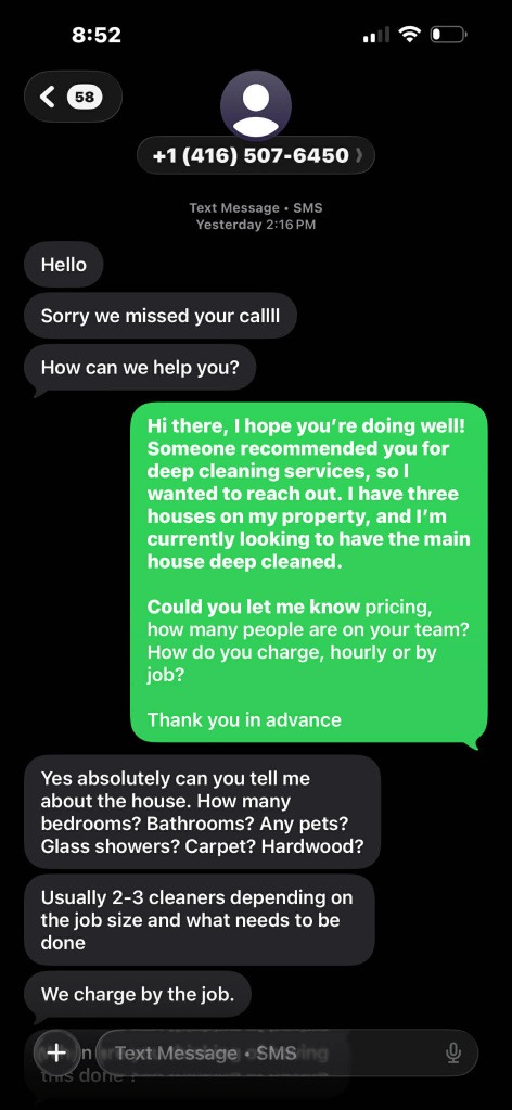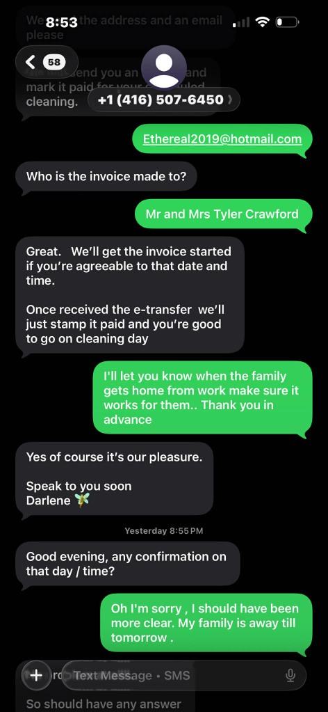 Carefully. Strategically. Crystal interacted with Redlick regarding these cleaning services. And what followed? For your entertainment we’re including screen shots of the text messages.