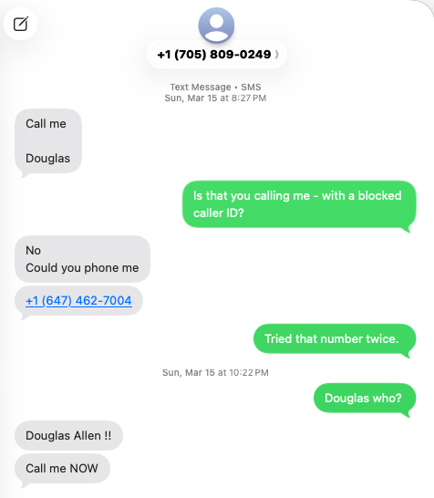 Then a text – pretending to be Douglas Allen a paralegal, but OOPS – Redlick sends the text from one of her ‘known to us numbers’.