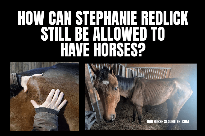 At present, Stephanie Redlick has two horses in her possession. And the cheque for the barn rental where they currently are – bounced – no surprise – right?